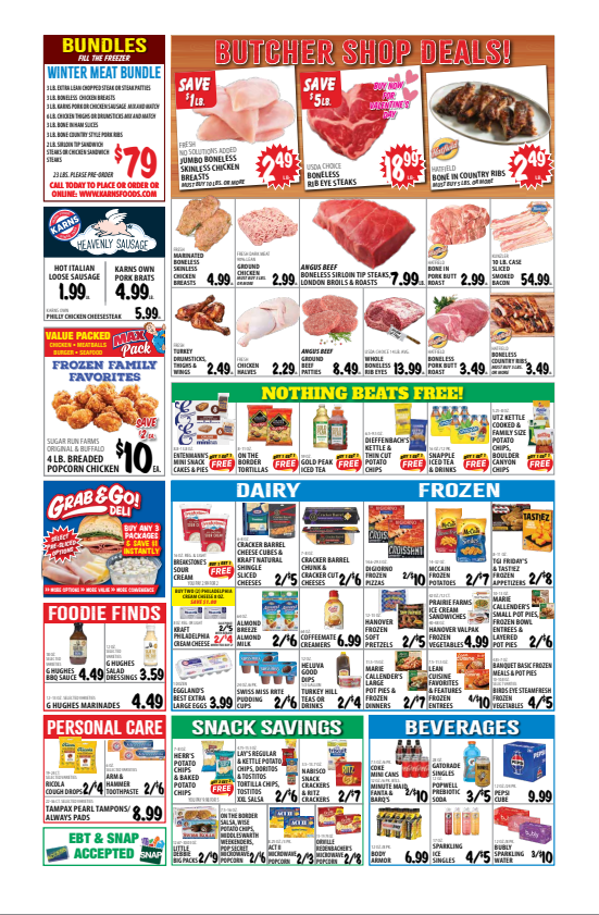 This week, the Karns Foods flyer features big discounts on frozen meals, veggies, and dairy products. Pick up milk, cheese, butter, and ice cream at great prices. Perfect for quick meals and snacks the whole family will enjoy.