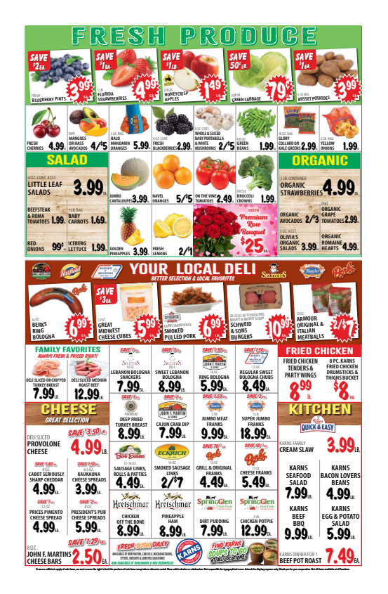 This week, Karns is offering fantastic deals on fresh produce. Enjoy low prices on fruits such as apples, grapes, and oranges, as well as vegetables like lettuce, tomatoes, and carrots. The Karns weekly ad makes it easy to eat fresh and healthy without overspending. Be sure to check out local and seasonal selections for the best value.